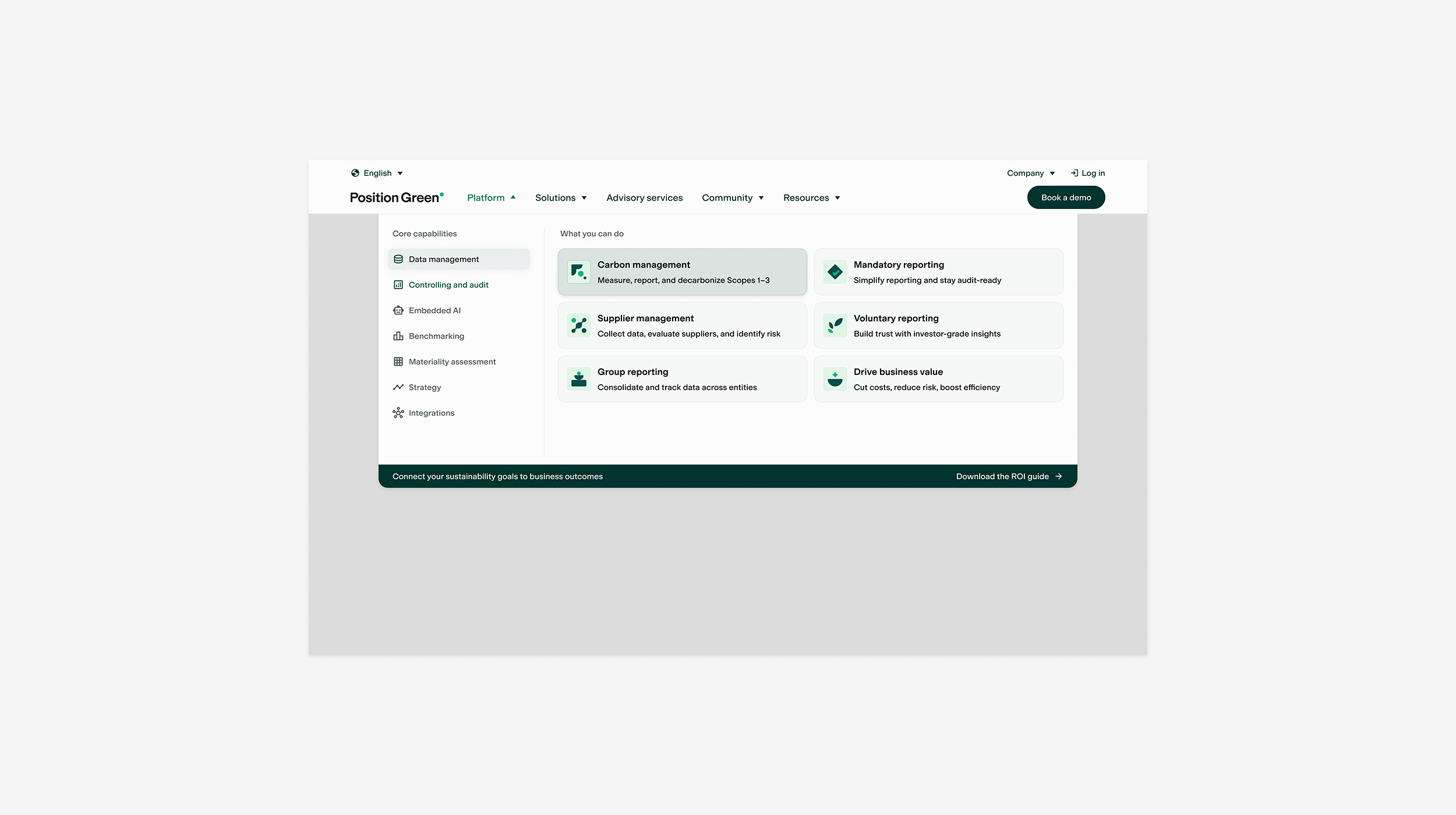 Position Green offers a broad ESG platform covering everything from carbon management and mandatory reporting to supplier management and group reporting, across multiple regulatory frameworks and industries. Their website had grown organically over the years and no longer reflected the depth or structure of the product in a clear way.